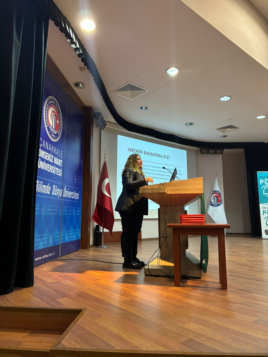 Konferansta ÇOMÜ Bağımlılıkla Mücadele Uygulama ve Araştırma Merkezi Müdür Yardımcısı Prof. Dr. Sibel Oymak ve Merkez Yönetim Kurulu Üyesi Doç. Dr. Alperen Korkmaz da konuşmacı olarak yer alarak bağımlılıkların sağlık üzerindeki etkileri, gençlerin korunmasına yönelik önleyici yaklaşımlar ve farkındalık çalışmalarının önemi hakkında katılımcılara bilgi verdi.