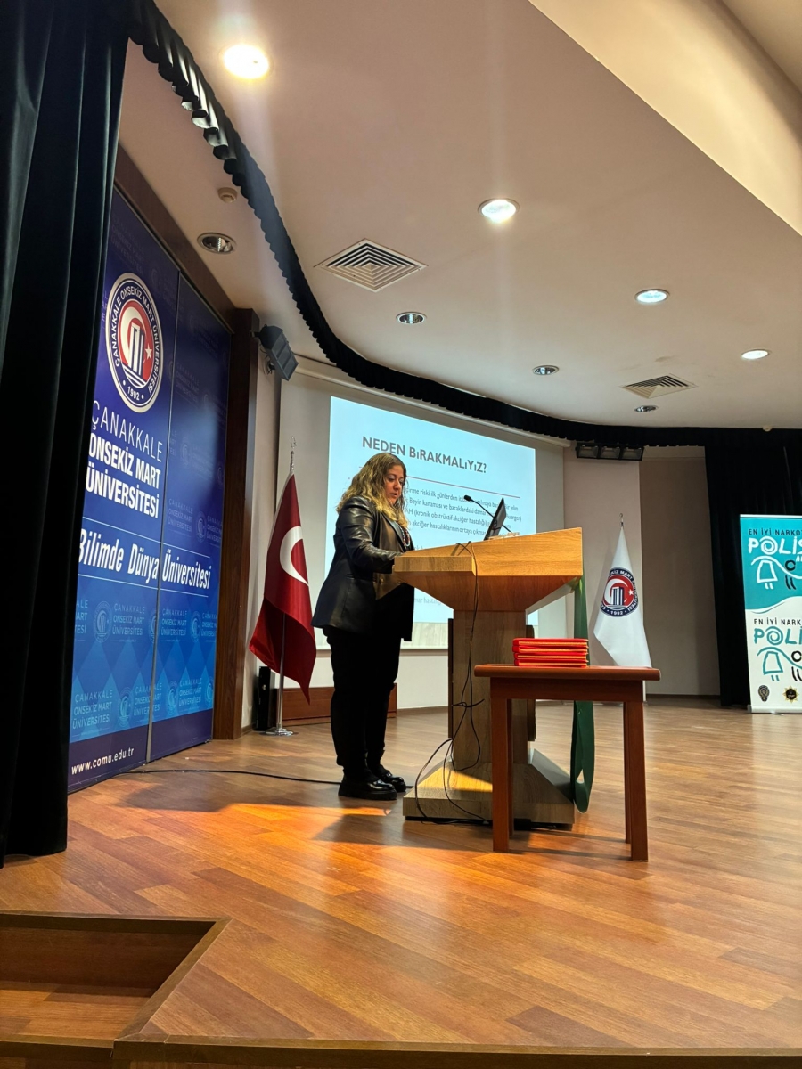 Çanakkale İl Emniyet Müdürlüğü Narkotik Suçlarla Mücadele Şube Müdürlüğü koordinesinde yürütülen “En İyi Narkotik Polisi Anne” projesi kapsamında, 8 Mart Dünya Kadınlar Günü dolayısıyla 9 Mart 2026 Pazartesi günü 13.00–15.00 saatleri arasında Çanakkale Onsekiz Mart Üniversitesi Troia Kültür Merkezi’nde bilgilendirme ve önlemeye yönelik bir konferans gerçekleştirildi.